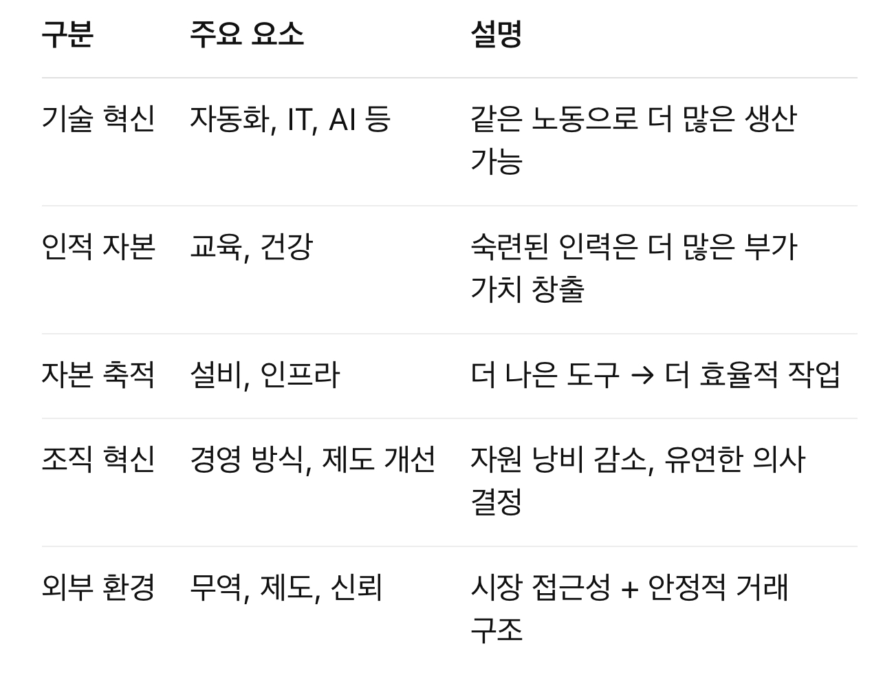 경제학적으로 가장 중심은 바로 “생산성 향상”입니다.