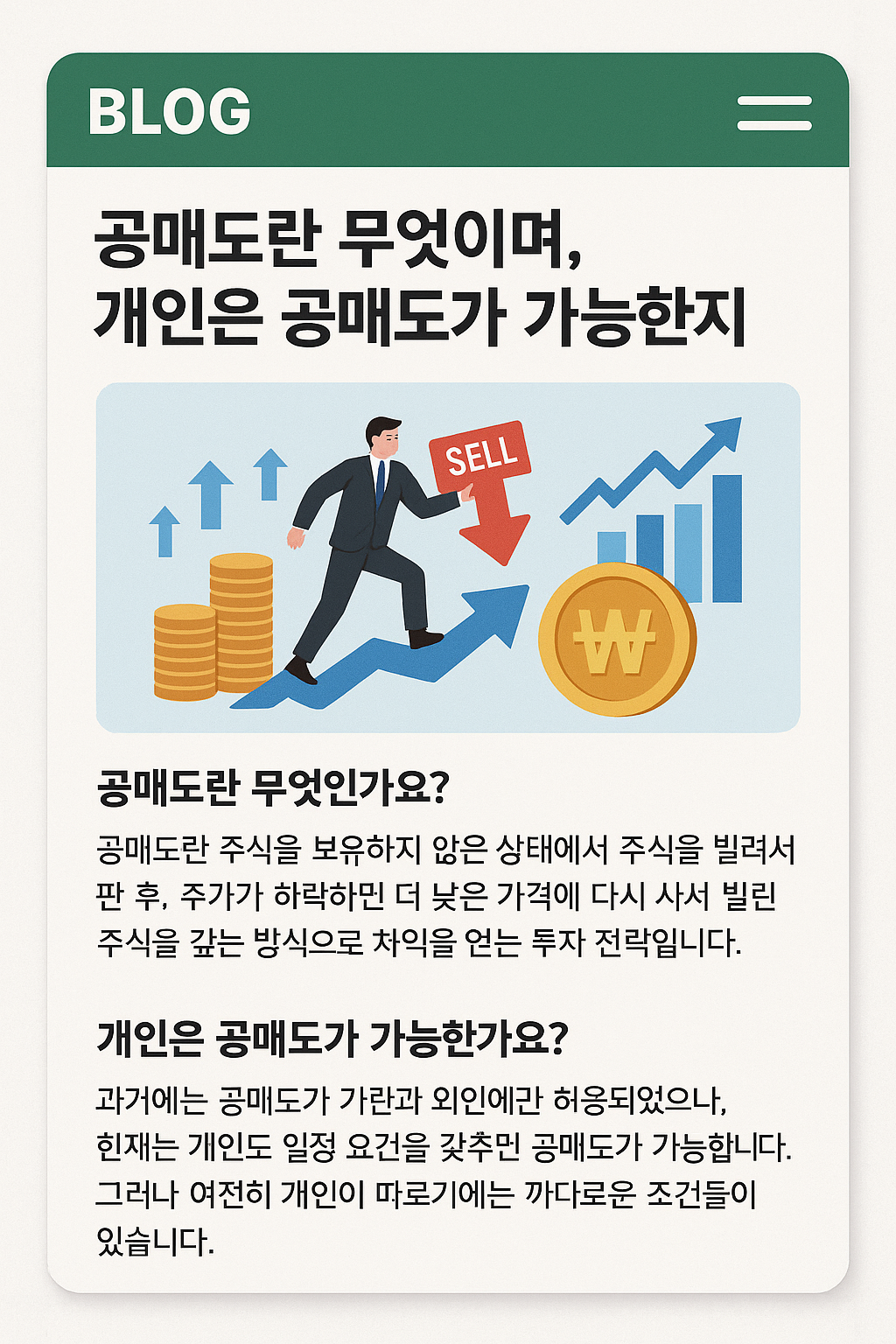공매도는 주가 하락을 예상할 때 수익을 얻을 수 있는 유용한 도구이지만, 높은 리스크와 복잡한 절차 때문에 충분한 이해 없이 접근하면 큰 손실로 이어질 수 있습니다.